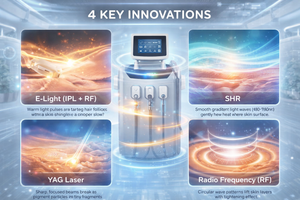 The 3-in-1 IPL laser hair removal machine is a high-end laser hair removal device designed for professional skincare treatments. This advanced system combines IPL hair removal, SHR (Super Hair Removal), Radio Frequency, and YAG laser technology to deliver effective permanent hair removal, skin rejuvenation, and tattoo removal. Ideal for clinics and salons, this laser hair removal machine helps reduce pigmentation, tighten skin, and improve overall texture using safe and efficient intense pulsed light hair removal technology.