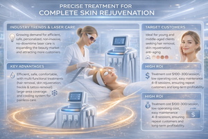 With features like large-area coverage and painless cooling technology, this IPL laser hair removal machine ensures high client satisfaction. Clinics can charge between $100–$300 per session, with low operating costs and repeat treatments (4–8 sessions), making it a highly profitable solution in the expanding laser hair removal market.