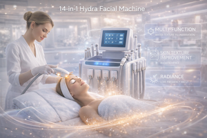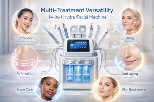 This 14 in 1 facial machine offers multiple treatments including exfoliation, lifting, anti-aging, acne care, and skin brightening. The hydrafacial machine for sale is suitable for all skin types and provides customized skincare solutions, making it a must-have professional facial machine for modern beauty businesses.