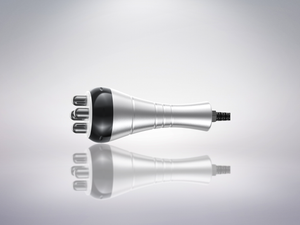 The Quadrupole RF handle uses capacitive coupling electrodes to generate an electric field that penetrates the skin, altering electrical particle movement to create heat and promote energy transfer to subcutaneous tissue.